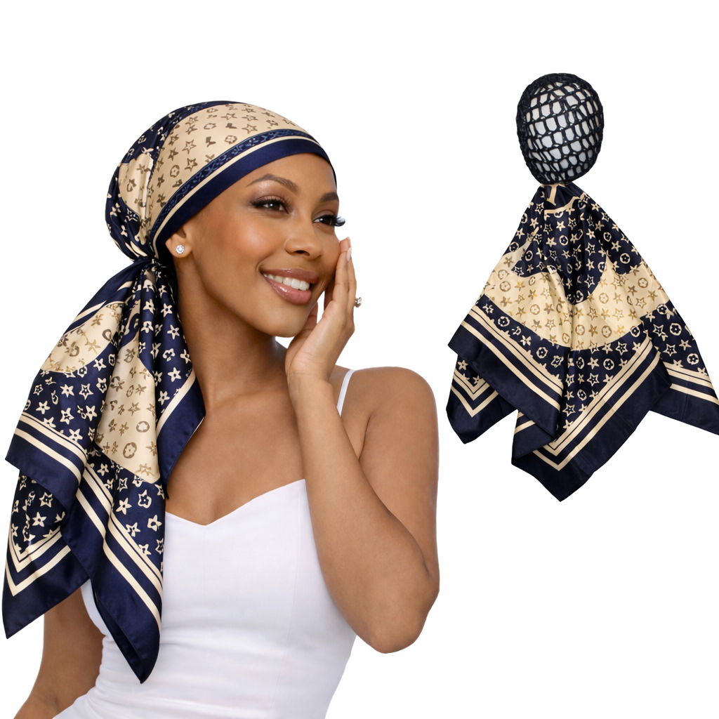 • 2-in-1 hair net and scarf design