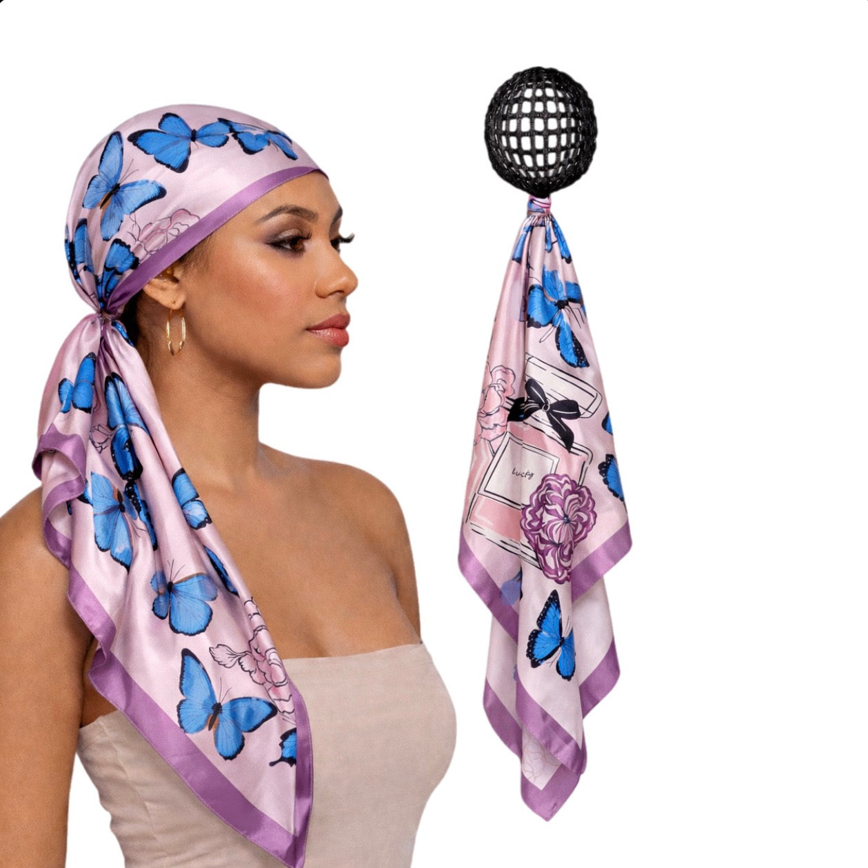 • 2-in-1 hair net and scarf design